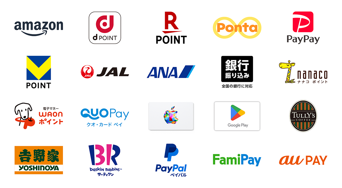 食事や移動、買い物にもPoiTele(ポイテレ)では専用アプリを通じてエブリポイントと連携できる機能を搭載。専用アプリで好きなコンテンツを楽しみながら特定のミッションを達成することでポイテレポイントが貯まり、ポイテレポイントはエブリポイントに交換可能。買い物や食事、電子マネーやマイルなど、およそ60種類の交換先から、いま一番欲しいものと交換できます。
