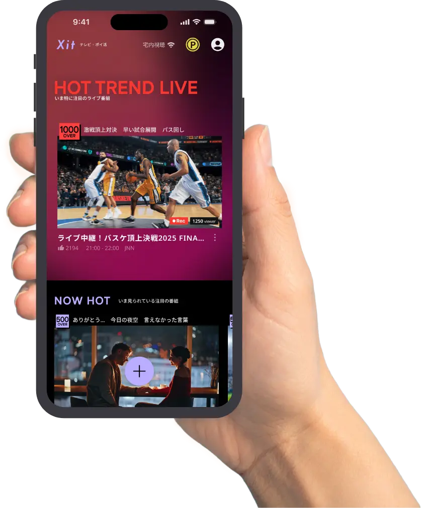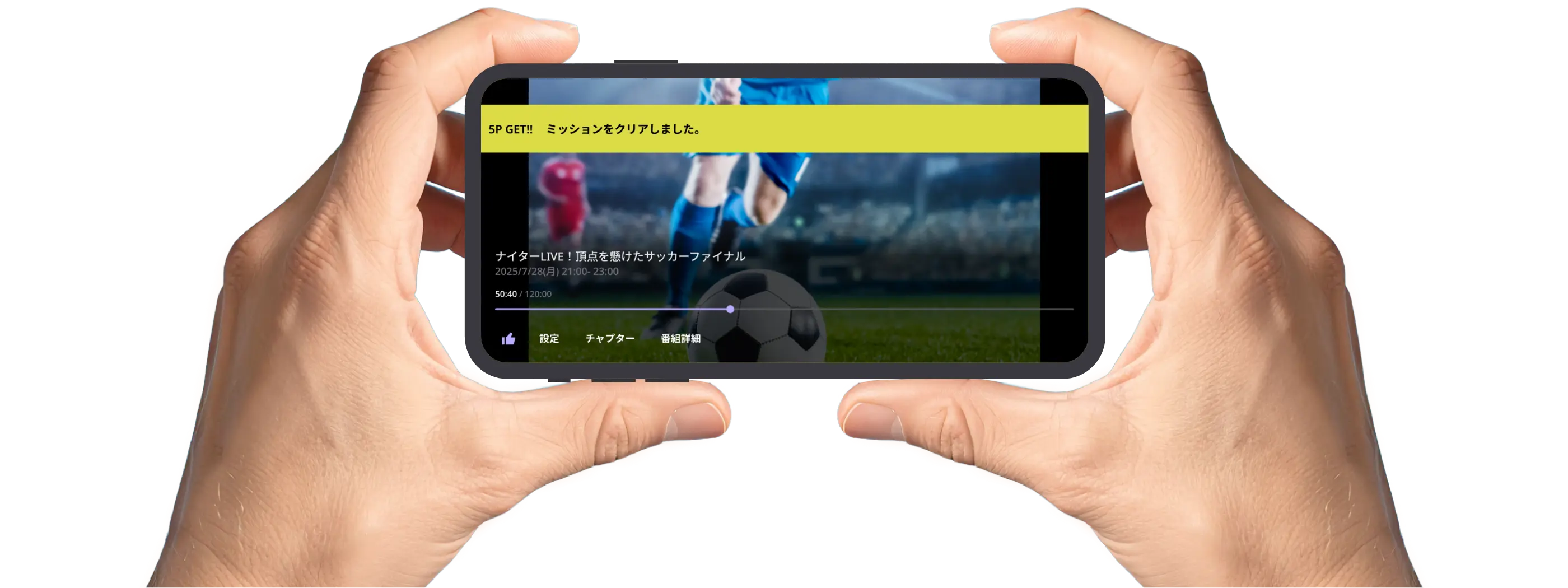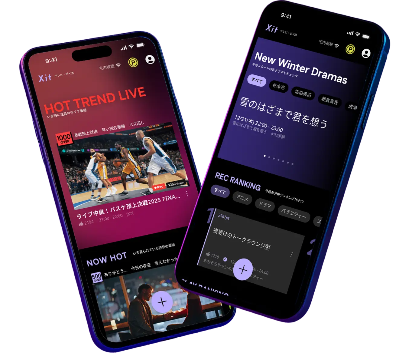 どこでもサクサク楽しめる。専用アプリはSNSを見る感覚で直感的に使えて、いつでもどこでもリアタイも録画もサクサク楽しめます。またチューナを持っていなくてもアプリを使って話題の番組やトレンドを探したり、ミッションを達成してポイントを貯めることができます。